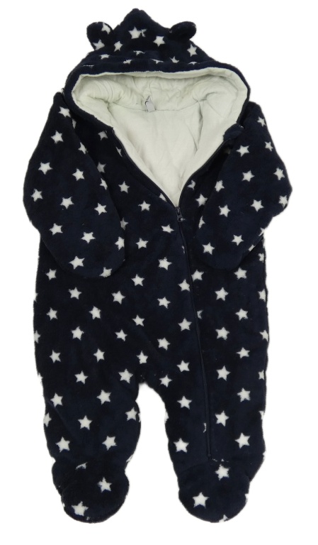 Tmavomodrá plyšová zateplená kombinéza s hvězdičkami a kapucí