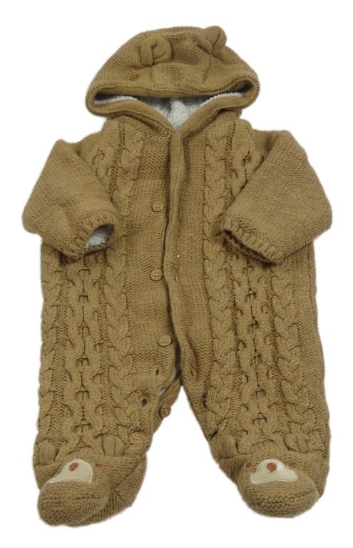 Hnědé vzorovaná pletená zateplená kombinéza s kapucí s oušky George