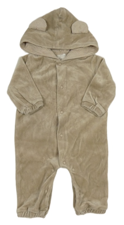 Béžová sametová kombinéza s kapucí s oušky