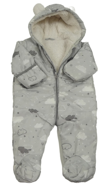 Šedá šusťáková zimní kombinéza s mraky a kapucí Matalan