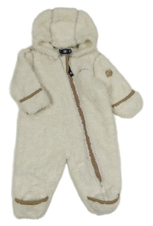 Bílá chlupatá kombinéza s hnědým lemem a kapucí Jako-o