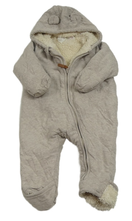 Béžová melírovaná tepláková zateplená kombinéza s kapucí H&M