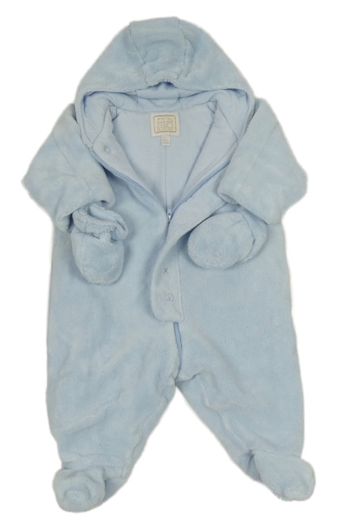 Světlemodrá plyšová zateplená kombinéza s kapucí + rukavice