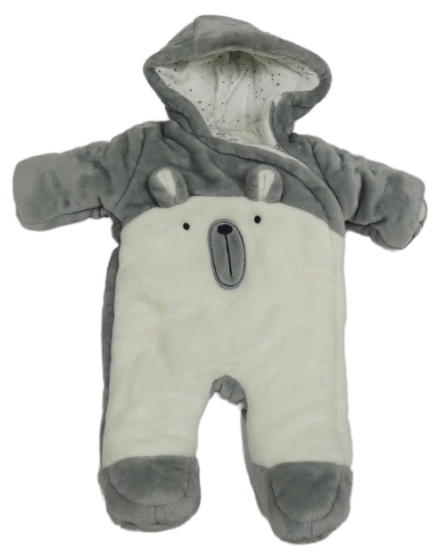 Šedo-bílá plyšová zateplená kombinéza s čumákem a kapucí F&F