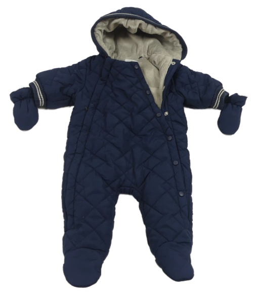 Tmavomodrá šusťáková prošívaná zimní kombinéza s kapucí + rukavice Next