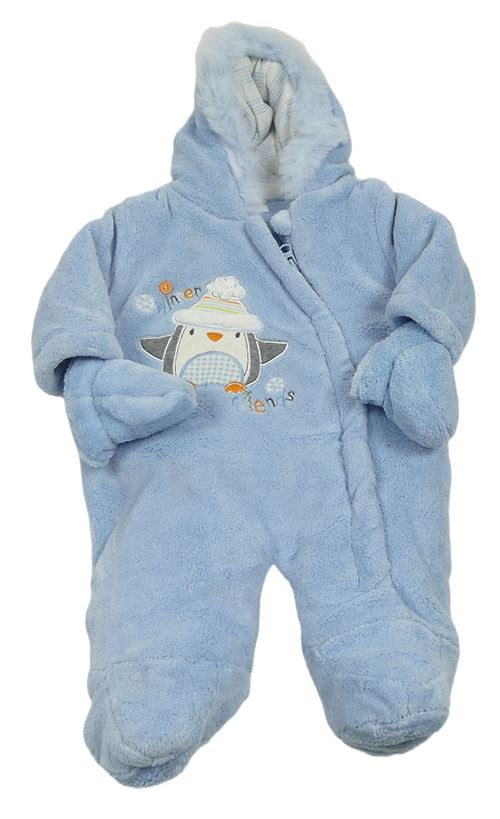 • Světlemodrá chlupatá zateplená kombinéza s tučňáčkem a kapucí s kožešinou + rukavice F&F