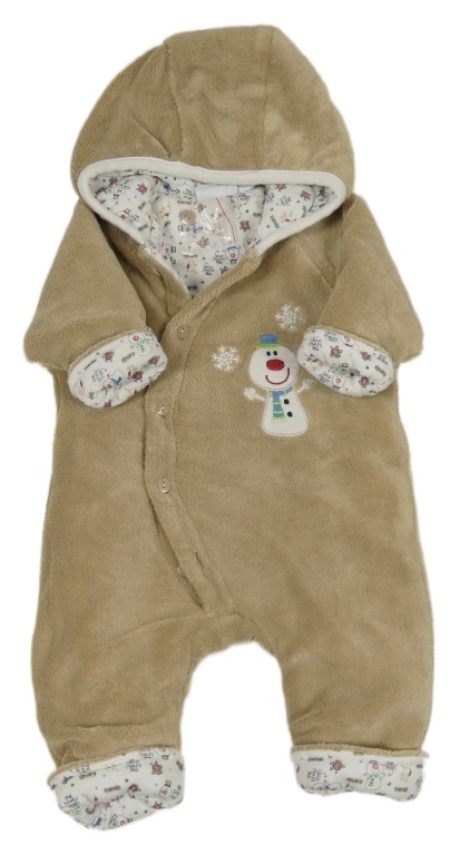 Béžová chlupatá zateplená kombinéza se sněhulákem a kapucí