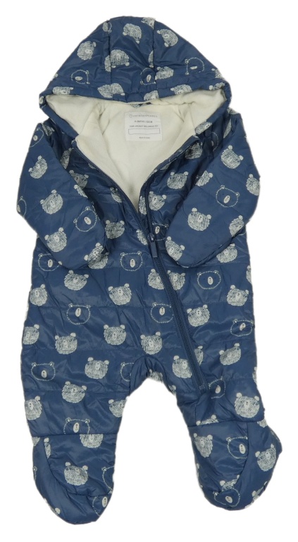 Tmavomodrá šusťáková zimní kombinéza s medvídky a kapucí Primark
