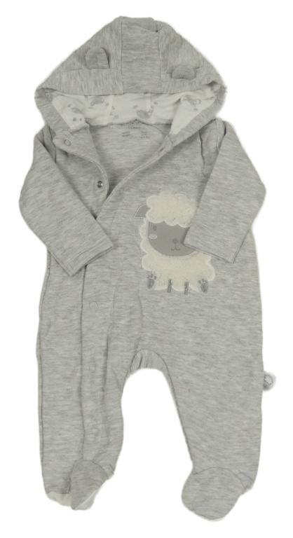 Šedá melírovaná prošívaná tepláková kombinéza s ovcí a kapucí