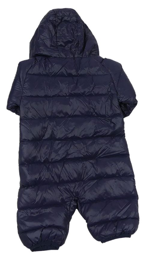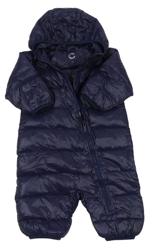 Tmavomodrá šusťáková prošívaná zimní kombinéza s kapucí