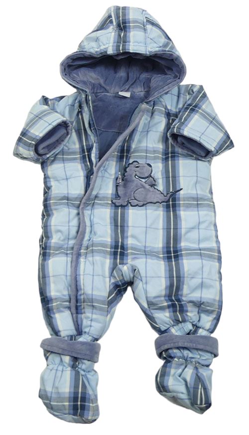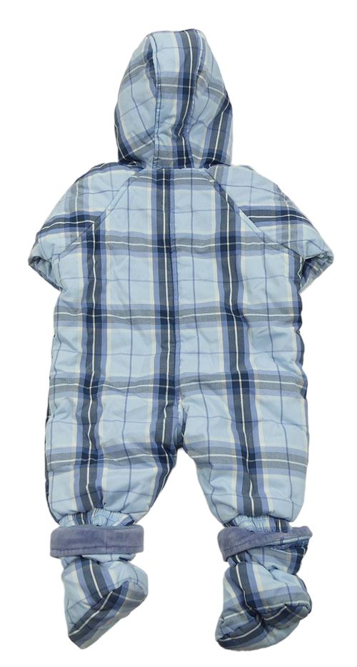 Světlemodrá kostkovaná šusťáková zimní kombinéza s kapucí + capáčky