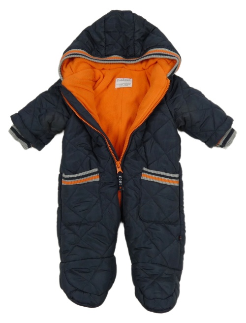 Tmavomodrá šusťáková zimní kombinéza s kapucí