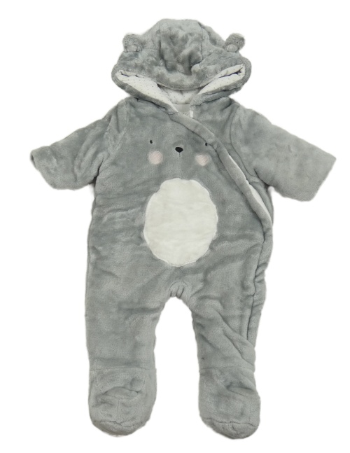 Šedo-bílá chlupatá zateplená kombinéza s čumákem a kapucí F&F