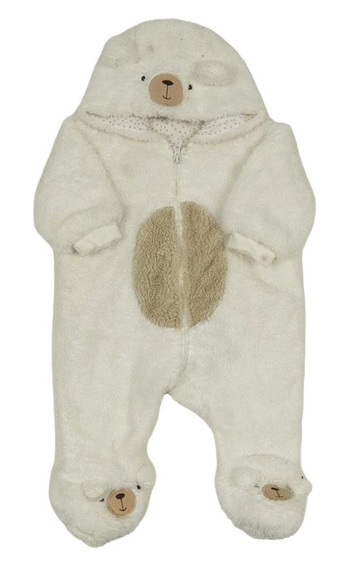 Bílá chlupatá podšitá kombinéza s kapucí - medvěd F&F