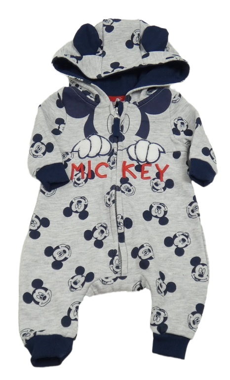 Šedo-tmavomodrá melírovaná tepláková kombinéza s Mickey a kapucí Disney