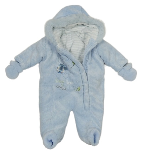Světlemodrá plyšová zateplená kombinéza s pejskem a kapucí