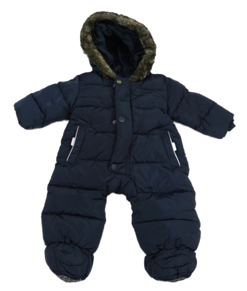 Tmavomodrá šusťáková zimní kombinéza s kapucí s kožešinou Baker