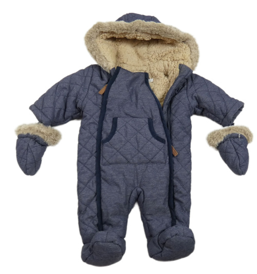 • Tmavomodrá melírovaná prošívaná šusťáková zimní kombinéza s kapucí + rukavice Miniclub