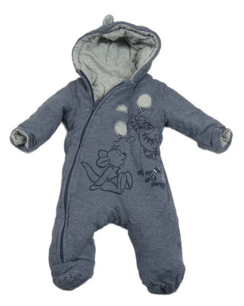 Tmavomodrá melírovaná tepláková zateplená kombinéza s tygrem a kapucí George