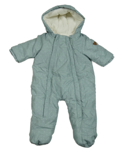 Zelená puntíkatá šusťáková zimní kombinéza s kapucí Topomini