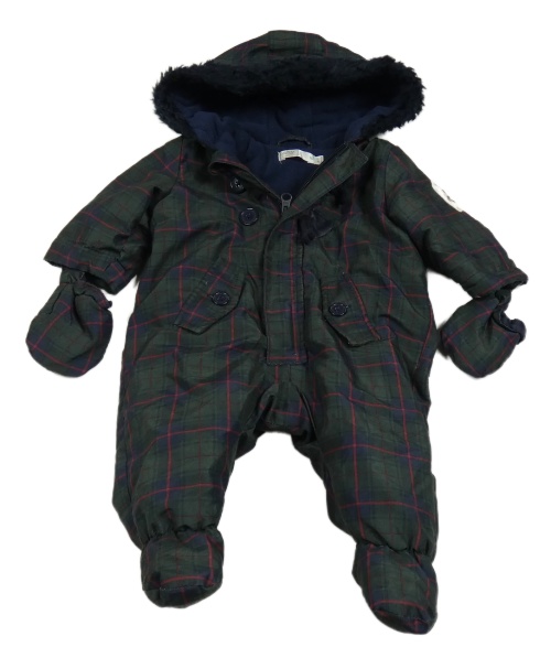 Tmavozeleno-tmavomodrá kostkovaná zateplená kombinéza s kapucí + rukavice M&Co.
