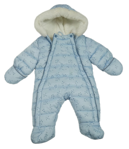 Světlemodrá vzorovaná šusťáková zimní kombinéza s kapucí Minoti