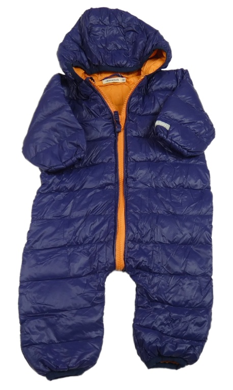 Tmavomodrá šusťáková zateplená kombinéza s kapucí
