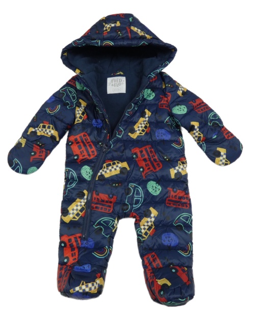 Tmavomodrá šusťáková zimní kombinéza s auty a kapucí F&F