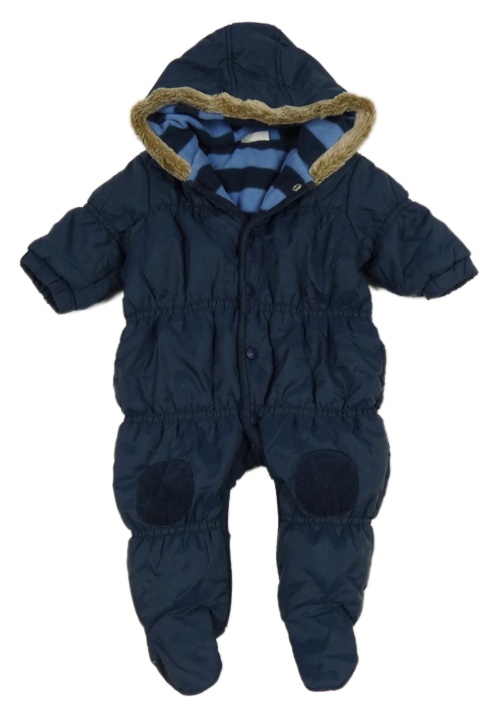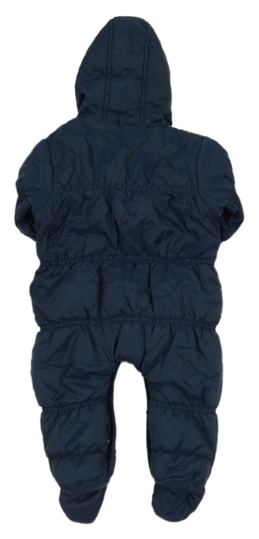 Tmavomodrá prošívaná šusťáková zimní kombinéza s kapucí s kožešinou Next