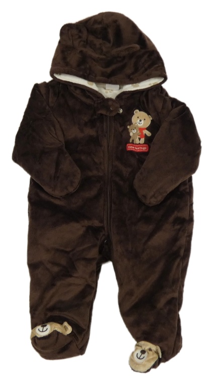 Hnědá chlupatá zateplená kombinéza s medvědy a kapucí