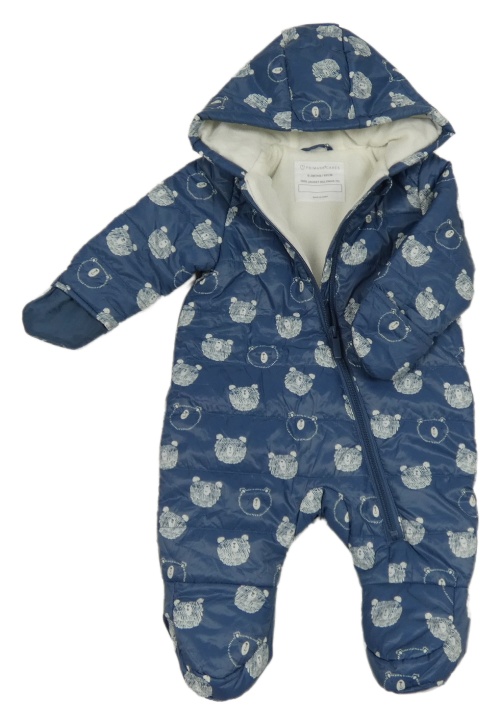 Tmavomodrá šusťáková zateplená kombinéza s medvědy a kapucí Primark