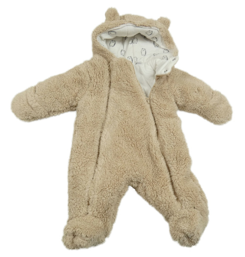 Béžová chlupatá zateplená kombinéza s kapucí