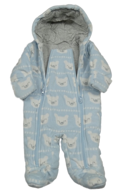 Světlemodrá fleecová zateplená kombinéza s medvídky s kapucí M&S