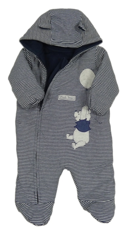 Tmavomodro-bílá pruhovaná zateplená kombinéza s Pú a kapucí s oušky George