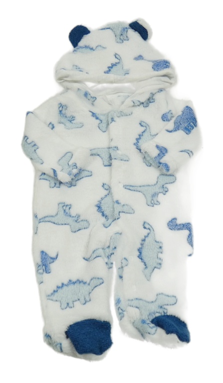 Bílá plyšová kombinéza s s dinosaury a kapucí