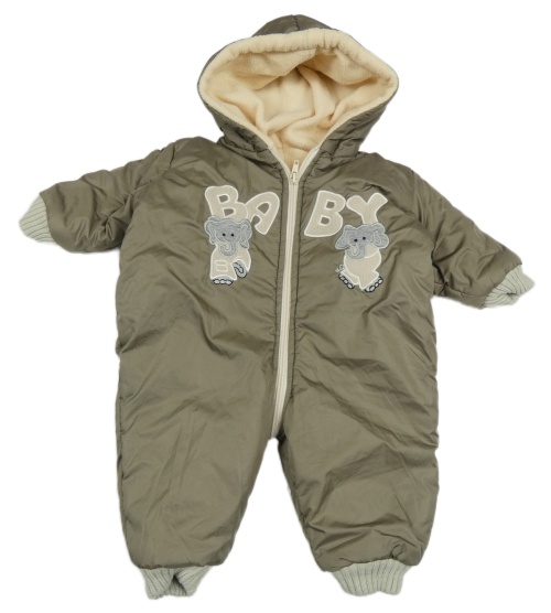 Hnědá šusťáková zimní kombinéza se slony a kapucí