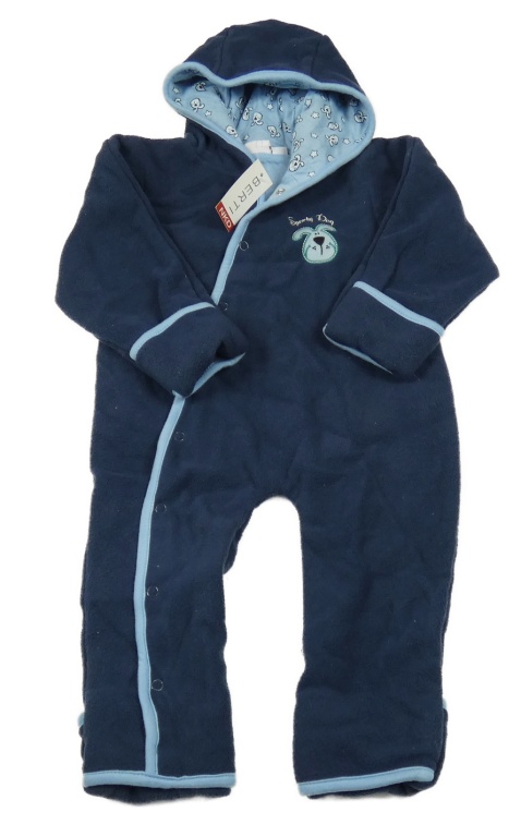 Nové - Tmavomodrá podšitá fleecová kombinéza s pejskem a kapucí