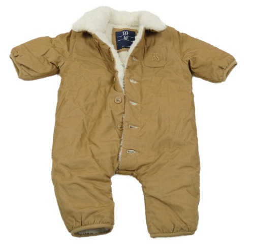 Hnědý zateplený manšestrový zimní overal s kožešinovým límcem GAP