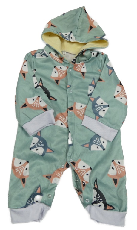 Zelená kombinéza s liškami a kapucí