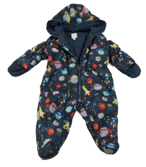 Tmavomodrá šusťáková zimní kombinéza s vesmírem a kapucí Bluezoo