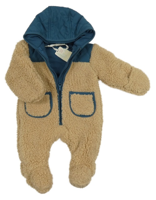 Nové - Béžovo-petrolejová huňato/šusťáková zateplená kombinéza s kapucí