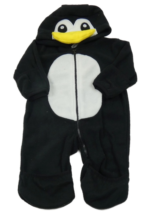 Černo-bílá fleecová kombinéza s kapucí - tučňák