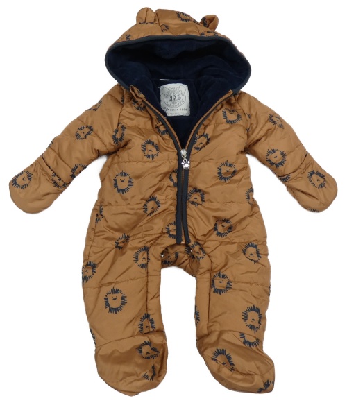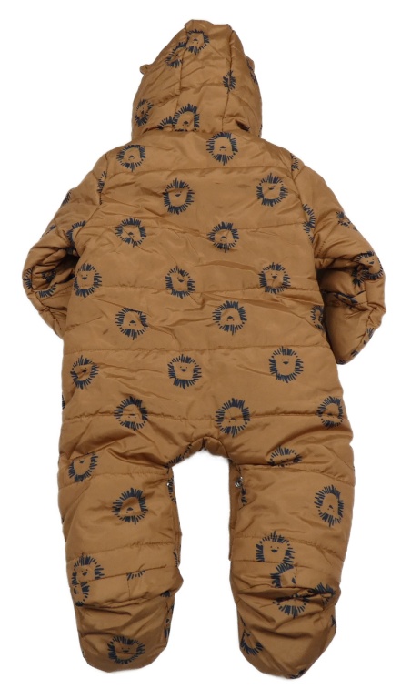 Hnědá prošívaná šusťáková zimní kombinéza se lvíčky a kapucí s oušky noukie's