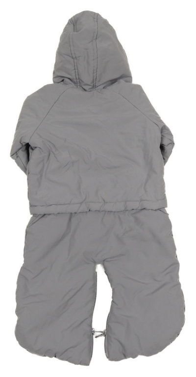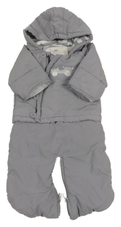 Šedá šusťáková zimní kombinéza s autíčkem a kapucí Vertbaudet
