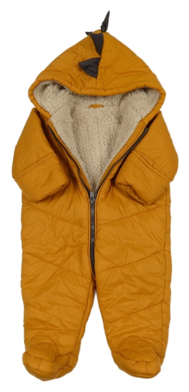 Hořčicová prošívaná šusťáková zimní kombinéza s kapucí a ostny Matalan