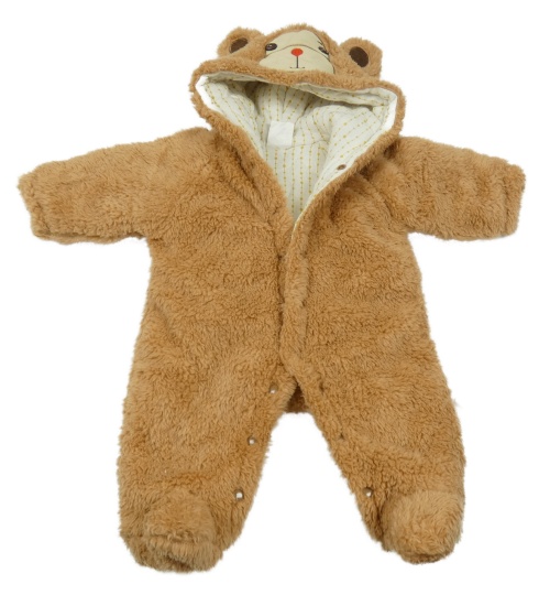 Béžová chlupatá zateplená kombinéza s kapucí - medvěd