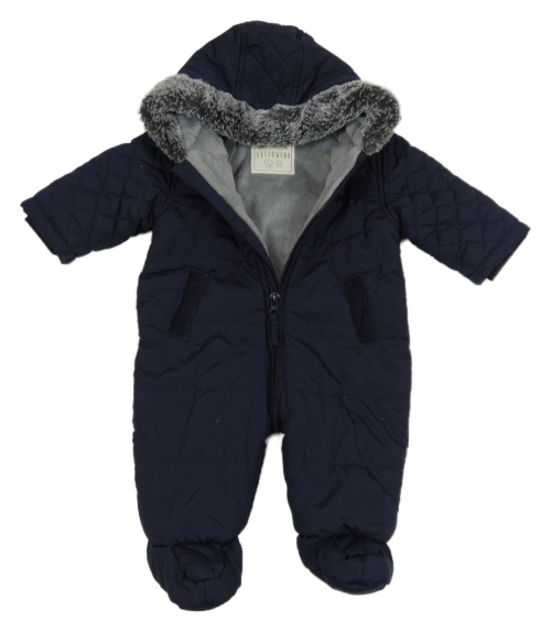 Tmavomodrá prošívaná šusťáková zimní kombinéza s kapucí s kožešinou George