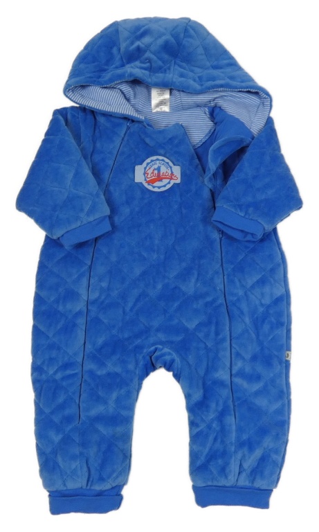 Modrá sametová prošívaná zateplená kombinéza s kapucí