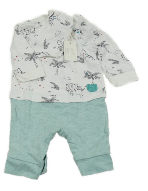 • Nové - 2Set - Bílo-mentolová melírovaná kombinéza se zvířátky a palmami + šátek/slinták Rocha John Rocha