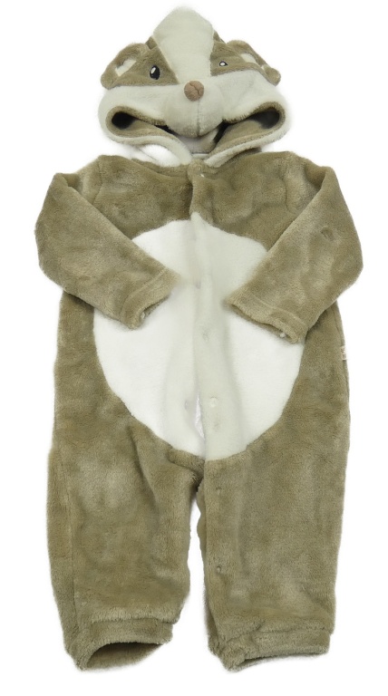 Béžovo-bílá plyšová kombinéza s kapucí - jezevec